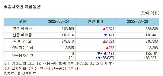 [표]증시주변 자금동향 (6/24)