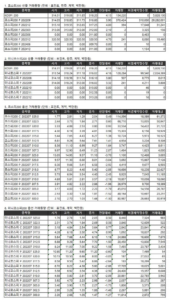 [표]거래소주가지수선물·옵션시세표(6/27)