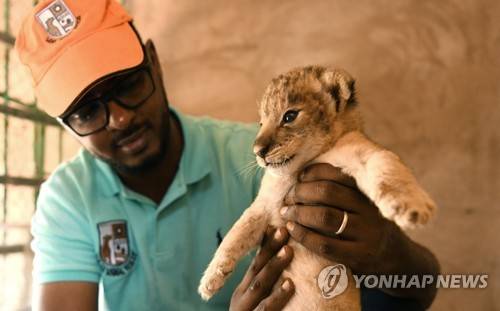 epa10036061 Osman Salih, founder of the Sudan Animal Rescue Center, holds an African lion cub during a medical checks at the center in Al Bageir, near the country's capital Khartoum, Sudan, 17 June 2022 (issued 27 June 2022). What started as a private rescue mission by Salih - initially financed by his own savings - to save five starving lions from the Al-Qurashi Gardens in Khartoum in January 2020, has now become a rescue center for numerous animals that is funded by donations and about weekly 600 visitors. Although one of the lions died one day after Salih's rescue attempt and another one died a few months later, his mission to rescue the animals was followed on social media and triggered worldwide support. Now he runs the rescue center on some 10-acres of land belonging to the family hosting 20 lions, monkeys, snakes and ostriches. One of the surviving lionesses named Kandaka, that was in the worst condition before being rescued recently gave birth to the lion cub and is also featured in the logo of the Sudan Animal Rescue Center. While his animal rescue center was welcomed by many supporters, Salih himself tries to keep a low profile as others also have criticised his work, saying that resources should be better diverted towards Sudan's humanitarian crisis. EPA/ELA YOKES ATTENTION: This Image is part of a PHOTO SET