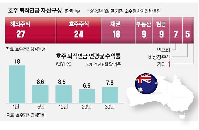 지난 10년간 호주 퇴직연금은 연평균 8.5% 수익률을 기록했다. 호주 국민이 별도의 재테크 없이도 은퇴할 때 목돈을 마련하는 비결이다. 한국의 퇴직연금 수익률은 연평균 1.5% 내외에 불과하다.