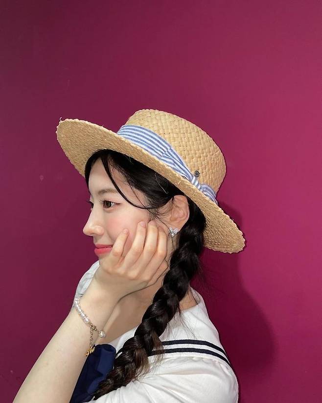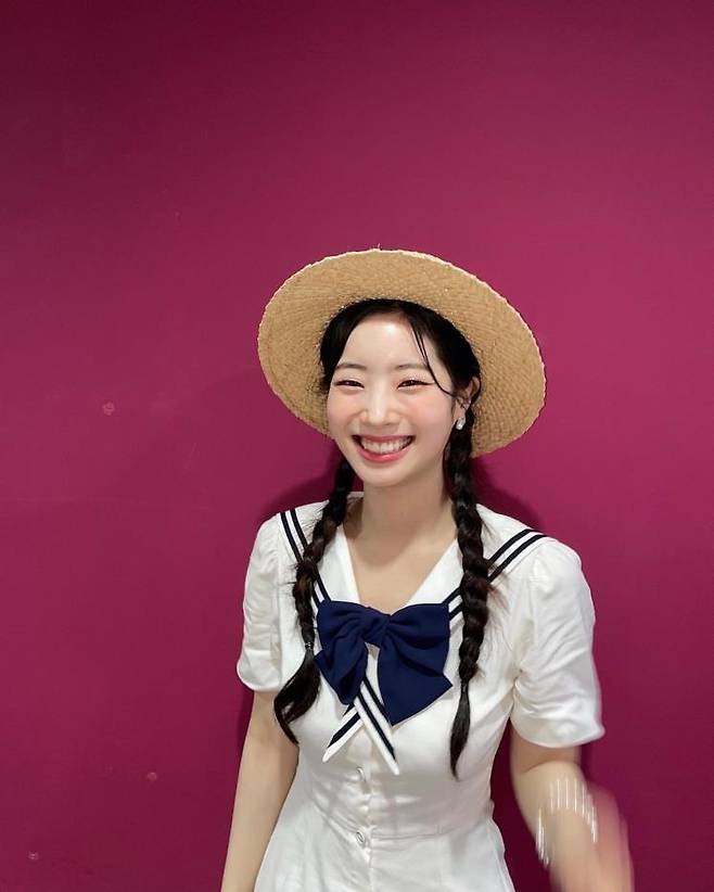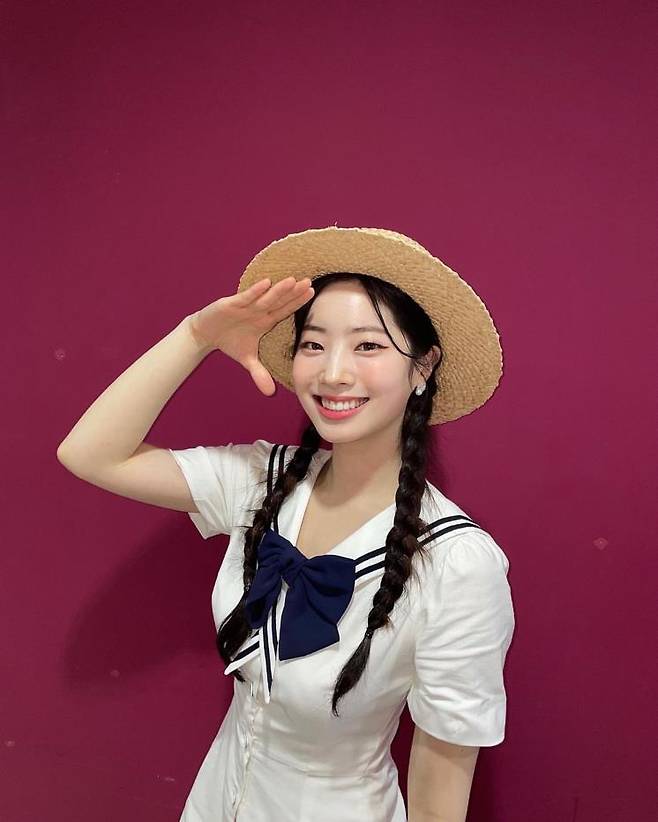 서머 패션의 바이블, 세일러 룩을 청순하게 소화한 다현은 라피아 해트와 함께 브레이드 헤어 스타일을 연출했다. 상큼한 미소와 눈웃음, 칼라를 장식한 리본까지 조화롭게 어우러져 다현 is 푸릇푸릇한 여름 그 자체랄까?