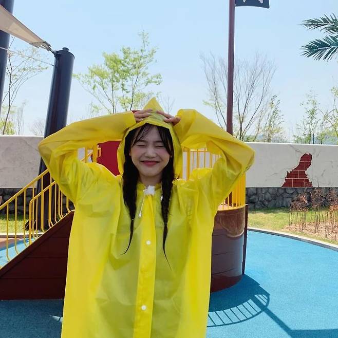 추억의 예능캐 ‘우비 소녀’를 연상시키는 옐로 우비를 입고 아래로 곱게 딴 헤어 스타일을 한 효정. 요즘 같은 장마철, 부스스한 헤어가 고민이라면 ‘ㄱㅇㅇ’를 절로 외치게 되는 효정의 스타일링을 참고해도 좋겠다.