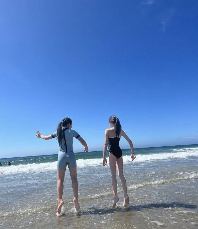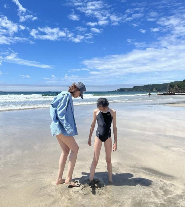 공개된 사진에는 수영복을 입은 야노시호와 추사랑 모녀가 행복한 바다 놀이를 즐기고 있는 모습이 담겨있다.