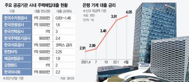 지난해 정부에서 혁신 지침을 통해 사내 주택자금대출 한도를 7000만 원 이하로 줄이고 대출금리도 공무원연금대출을 참고해 한국은행에서 공표하는 은행 가계대출(지난해 10월 기준 3.46%) 금리 이상을 받을 것을 주문했지만 제대로 지켜지지 않고 있는 것이다.