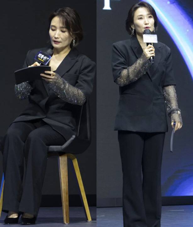 공개된 사진 속 박경림은 올블랙 정장을 입고 사회를 보고 있는 모습.