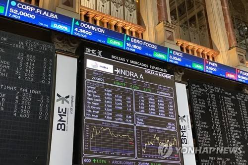 epa10036191 A screen shows the evolution of the IBEX 35 at the stock exchange building in Madrid, Spain, 27 June 2022. The Management Committee of the Madrid Stock Exchange General Index (IGBM) has decided that the index will continue to be composed of 115 companies in the second half of 2022. The committee also approved the incorporation of Atrys Health, which replaces Zardoya Otis, according to BME, the market manager. EPA/Vega Alonso del Val