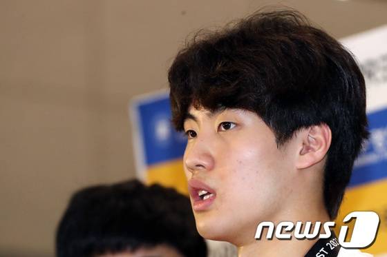 (인천공항=뉴스1) 이동해 기자 = 2022 국제수영연맹(FINA) 세계선수권대회 자유형 200m 은메달리스트 황선우가 27일 오후 인천국제공항 1터미널을 통해 귀국 후 인터뷰를 하고 있다. 2022.6.27/뉴스1