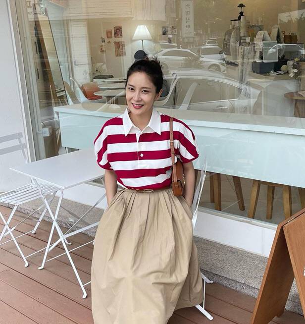 공개된 사진 속 장가현은 카페를 방문한 모습. 스프라이트 셔츠에 베이지색 치마를 입은 장가현은 올해 46세라는 사실이 믿기지 않을 정도로 동안 미모를 자랑해 감탄을 자아낸다.