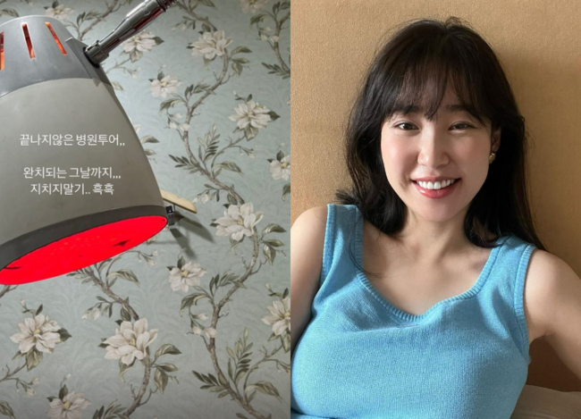 사진에는 병원을 방문한 듯 적외선 치료를 받고 있는 풍경이 담겼다.