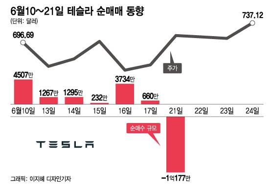 하지만 테슬라 주가가 9.3% 폭등, 다시 칠백슬라를 회복하며 711.11달러로 마감한 지난 21일에 서학개미들은 테슬라를 하루에 1억177만달러 순매도했다.