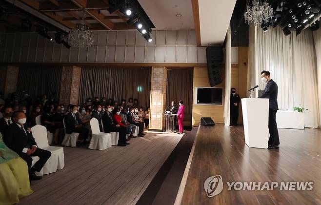 (서울=연합뉴스) 신현우 수습기자 = 27일 오후 서울 성북구 삼청각에서 열린 삼청각 개관식에서 오세훈 서울시장이 축사하고 있다.