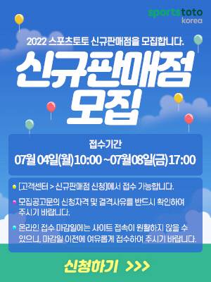이번 신규판매인 모집 공고는 20일부터 오는 7월 1일까지 약 2주간 이뤄진다. 신청 접수는 7월 4일 오전 10시부터 8일 오후 5시까지 스포츠토토 홈페이지 내 ‘신규판매인 신청접수’를 통해 신청이 가능하다.