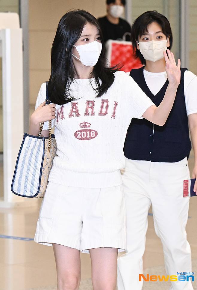 가수 겸 배우 아이유(이지은)가 6월 27일 오후 일본에서 진행된 영화 ‘브로커’ 무대인사 일정을 마치고 인천광역시 중구 운서동 인천국제공항을 통해 입국하고 있다.