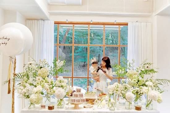 이날 공개된 사진에는 조민아가 홀로 준비한 강호의 돌잔치가 담겼다. 흰색 꽃으로 꾸며진 모습이 따뜻한 분위기를 자아냈다.