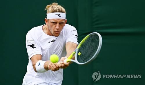 epa10036626 Alejandro Davidovich Fokina of Spain plays a backhand in the men's first round match against Hubert Hurkacz of Poland at the Wimbledon Championships, in Wimbledon, Britain, 27 June 2022. EPA/NEIL HALL EDITORIAL USE ONLY