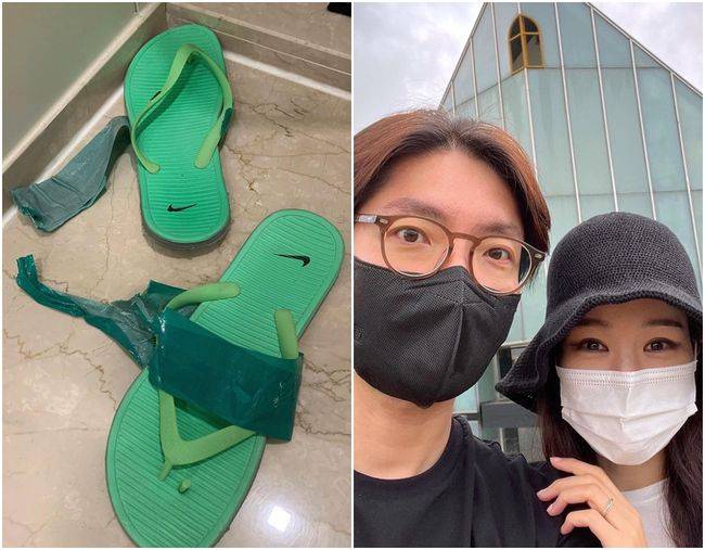 미자는 "쪼리가 같은 날 동시에 떨어질 수 있는 건가요? 쌀국수 먹다가 쪼리 터지고 집에 어떻게 가나 당황한 오빠"라고 글을 남겨 웃음을 자아냈다. 공개된 사진은 김태현의 초록색 플립플랍이 떨어져 보는 이들을 당황하게 만들었다.