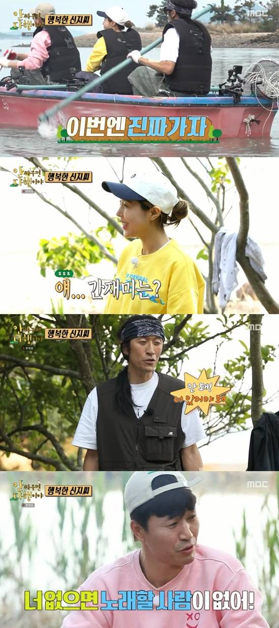 소라를 잡으려고 했으나 아무것도 잡지 못 하고 있자 신지는 "나는 두 사람만 믿고 오지 않았냐. 이러다 굶게 생겼다"라고 이야기했다. 김종민, 빽가는 "가만히 있으"라며 신지를 안심시켰다.
