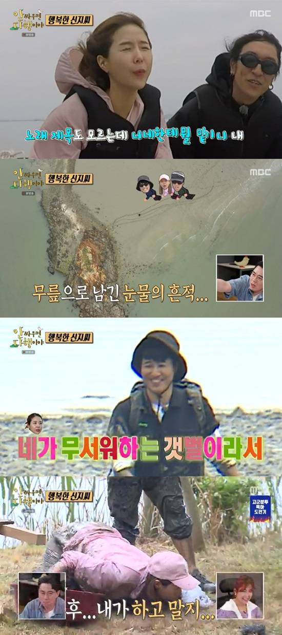 물이 덜 찼을 때 들어온 코요태는 섬까지 갯벌을 걸어서 가야 됐다. 시간을 잘못 알아본 김종민에게 신지는 "뭘 준비한 거냐. 뻘짓을 준비한 거냐"라고 물었다. 신지는 "아 또 잘못됐구나. 막막했다"라고 털어놨다.