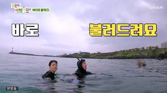 이날 해녀체험을 마치고 장민호는 수중에서 ‘남자는 말합니다’를 부르며 아쉬워하는 해녀 삼촌들을 위한 수중 콘서트를 펼쳤다. 해녀 삼촌들 역시 함께 노래를 부르는 모습으로 훈훈함을 더했다.