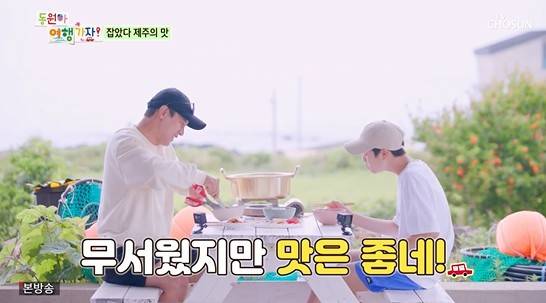 해녀체험에 콘서트까지 일석이조 기쁨을 누리고 돌아온 장민호와 정동원. 직접 잡은 홍삼을 맛본 장민호는 “직접 잡아서 먹으니 더 맛있다”고 감탄했고 정동원 역시 ‘엄지 척’ 반응을 보였다. 이어 직접 잡은 문어 시식에 나선 두 사람은 직접 잡아 더 맛있는 문어 맛에 감탄했다.