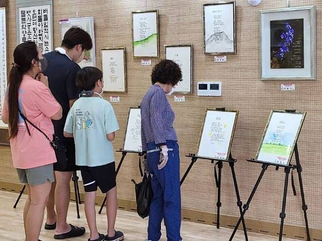 이번 작품전시회는 스마트폰 사진촬영, 도자기, 커트와 올림머리, 한글서예, 행복한 수필글쓰기 강좌를 수강한 60여 명의 수강생이 참여한 100여 작품이 전시됐다. 전시회 첫날에는 조근제 군수가 방문해 작품을 살펴보며 수강생들을 응원하고 축하했다.