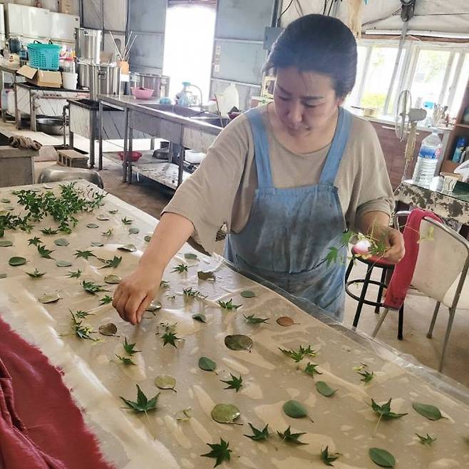 교육 과정은 먼저 바탕이 되는 색을 빨갛게 락염색하고, 나뭇잎을 올려 모양을 잡고 그 위에 철매염 된 천을 올린다. 이어 천과 나뭇잎을 함께 봉으로 말아 마무리 한 천을 찜기에서 쪄내면, 바탕색와 나뭇잎이 철매염 된 천과 각각 반응해 빛깔이 나타난다. 이를 빛과 바람으로 건조시켜 아름다운 빛깔의 천연염색을 완성했다.