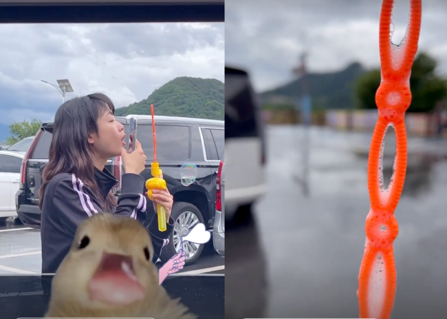 27일, 이유미는 자신의 SNS에 짧은 영상들을 게재했다. 영상 속 그는 오리 모양의 비눗방울 장난감을 사 핸드폰을 가까이 갖다 대고 촬영하며 부는 모습. 이유미의 측면은 그의 지인이 찍어준 것으로 보인다.