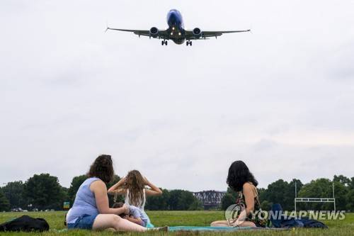 epaselect epa10036988 Plane watchers look on as a jet comes in for a landing at Ronald Reagan Washington National Airport in Arlington, Virginia, USA, 27 June 2022. More than 800 flights across the US were cancelled and 6,500 flights were delayed on Sunday. Heading into the Independence Day holiday weekend airlines have reduced flight schedules and are faced with staff shortages and surging demand for travel. EPA/SHAWN THEW