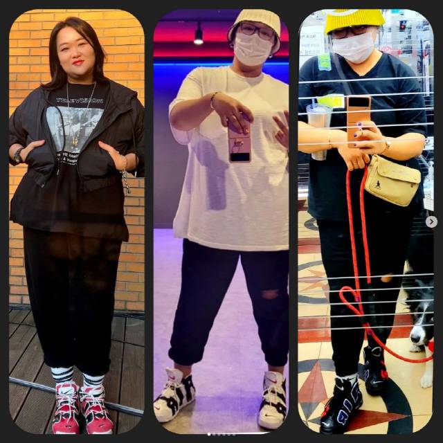 공개된 사진 속 하재숙은 남편이 사준 운동화를 신고 신나게 춤을 추고 있는 모습.