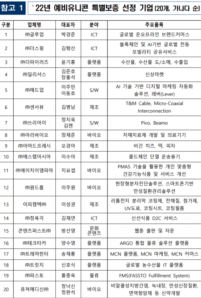 최대 200억 특별보증 예비유니콘 20개사 선정