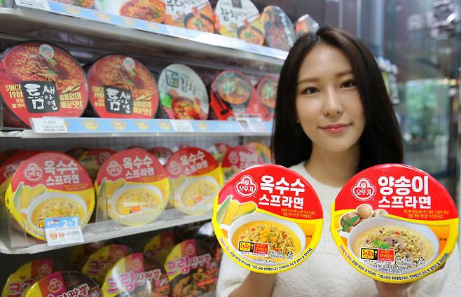 양송이스프라면과 옥수수스프라면은 GS25의 용기면 MD가 오뚜기의 대표 상품이자 우리나라 최초의 스프 상품을 용기면으로 만들어보자는 제안으로 출발해 상품화됐다.