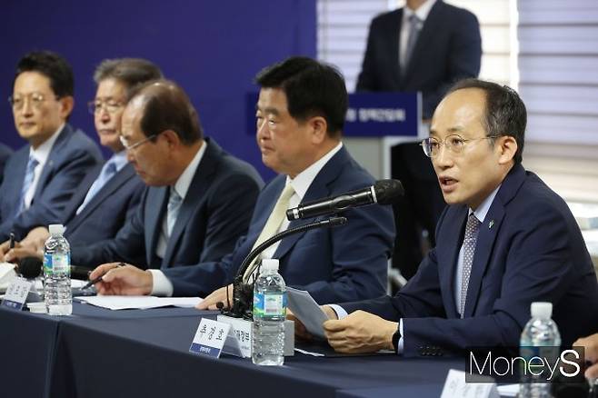 [머니S포토] 경총 방문한 추경호 "대기업, 과도한 임금 인상 자제해야"