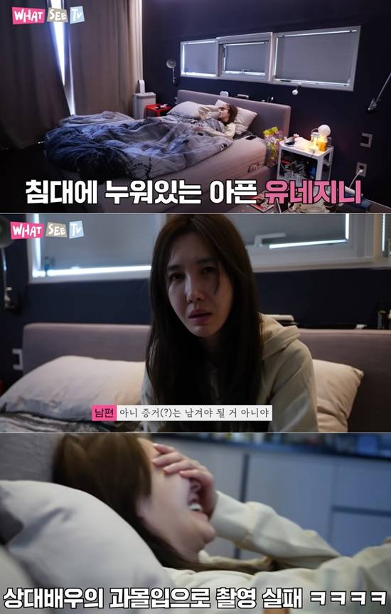 엄태웅은 누워있는 윤혜진을 카메라에 담으며 "왜 그래?"라고 걱정스럽게 물었다.