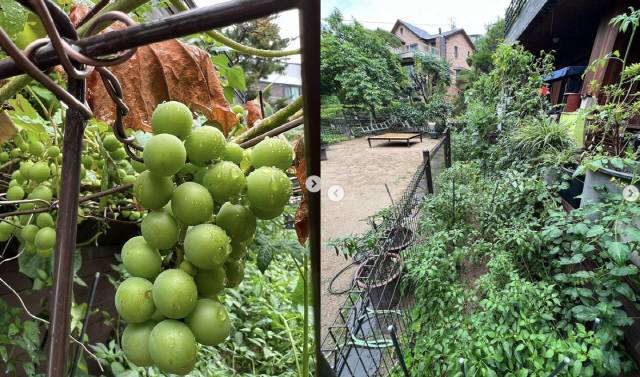 이어 "블루베리 오디 보리수 매실 포도 감 토마토 상추 고추 오이 깻잎 치커리 쑥갓 고수 허브 부추 아욱. 쓰고보니 이렇게나 많네..."라고 감탄했다.