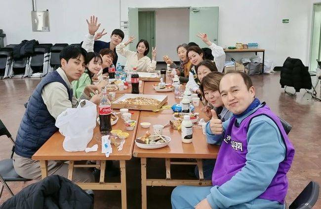 최근 종영한 tvN 드라마 ‘우리들의 블루스’에서 호흡을 맞춘 배우들과 찍은 사진들인데, 김광규가 배우들과 휴식 시간에 배우들과 피자를 먹으며 찍은 사진이 눈길을 끌고 있다.