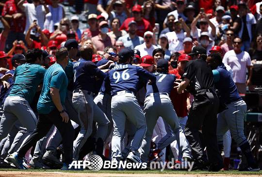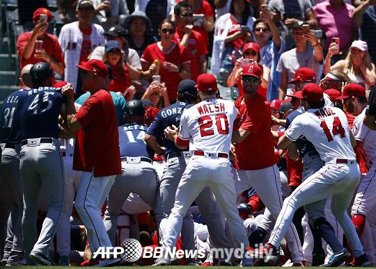 시애틀과 에인절스는 지난 27일(이하 한국시각) 미국 캘리포니아주 애너하임의 에인절스타디움에서 벤치클리어링을 벌였다. 무려 8명이 퇴장을 당하는 대참사였다.