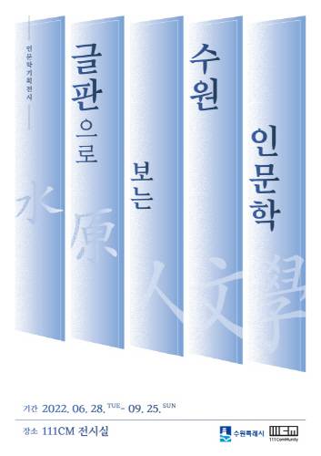 28일부터 9월 25일까지 수원시 복합문화공간 111CM에서 열리는 전시회에는 2013∼2021년 상·하반기 버스정류장 인문학글판 공모 청소년부·일반부 최우수작 33편, 2022년 상반기 인문학글판 선정작 77편과 2012∼2022년 수원희망글판 봄·여름·가을·겨울편 선정작 40편 등이 전시된다.