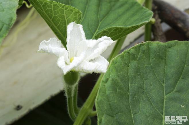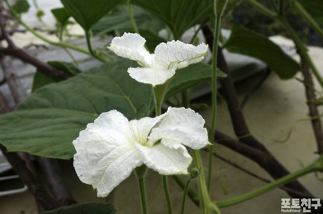 밤에 피는 하얀 박꽃이 해 질 녘 예쁘게 피었습니다.