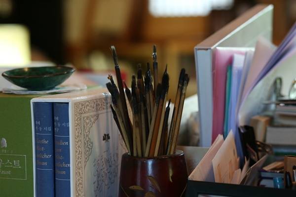| ▲ 전영애 교수의 부친이 생전에 사용한 붓. 마모된 정도로 보아 80만 자 이상의 글자를 썼던 것으로 추정된다. |