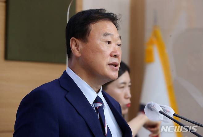 [서울=뉴시스] 배훈식 기자 = 진재수 2023 강릉 세계합창대회 조직위원회 운영추진단장이 28일 오전 서울 종로구 외교부 청사 브리핑실에서 대회 D-1년 브리핑을 하고 있다. 2022.06.28. dahora83@newsis.com