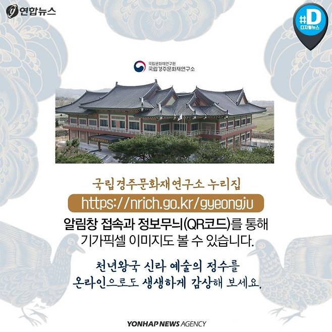 국립경주문화재연구소 누리집 (https://nrich.go.kr/gyeongju) 알림창 접속과 정보무늬(QR코드)를 통해 기가픽셀 이미지도 볼 수 있습니다.
