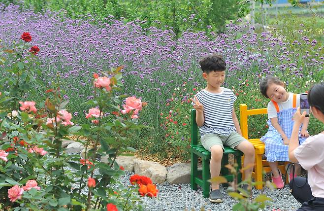 담양군 달빛여행정원에 버들마편초가 만발해 보랏빛 꽃향연을 펼치고 있다.