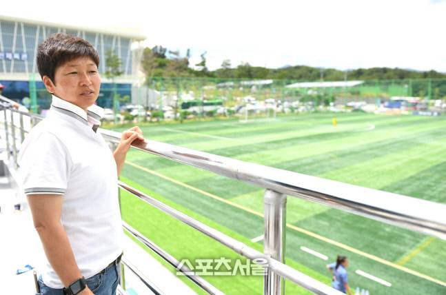 U-20 여자축구대표팀 황인선 감독이 28일 삼척복합체육공원에서 열린 제30회 여왕기 전국여자축구대회를 지켜보고 있다.