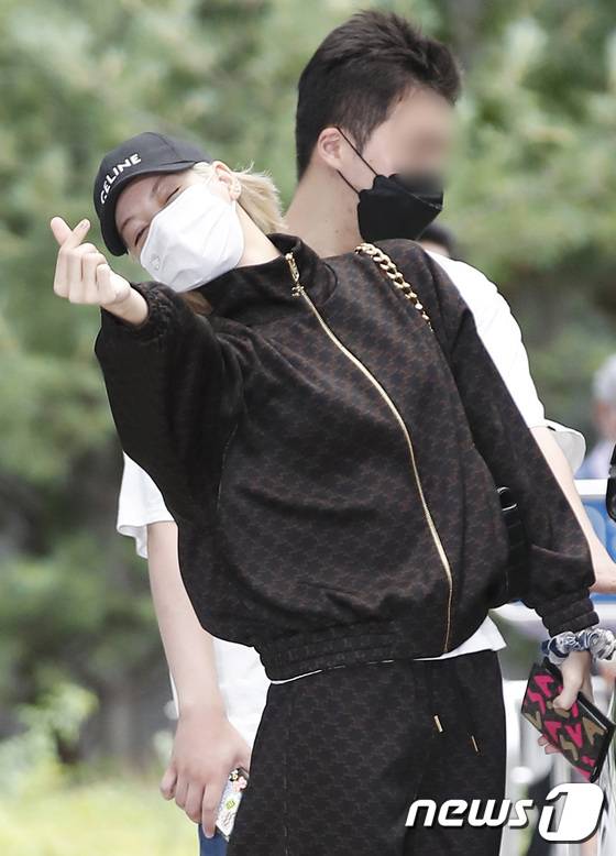(김포공항=뉴스1) 권현진 기자 = 블랙핑크 리사가 셀린느(CELINE) 남성 여름 2023 패션쇼를 마치고 28일 김포비즈니스항공센터를 통해 프랑스에서 귀국해 하트를 그리고 있다. 2022.6.28/뉴스1