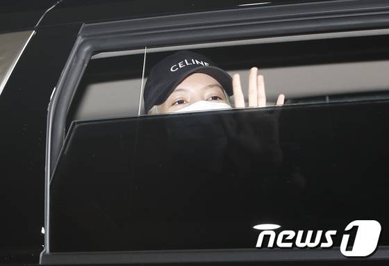 (김포공항=뉴스1) 권현진 기자 = 블랙핑크 리사가 셀린느(CELINE) 남성 여름 2023 패션쇼를 마치고 28일 김포비즈니스항공센터를 통해 프랑스에서 귀국해 팬들에게 인사를 하고 있다. 2022.6.28/뉴스1