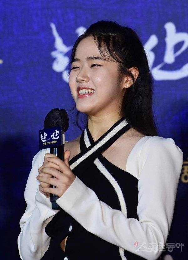 배우 김향기가 28일 서울 광진구 자양동 롯데시네마 건대입구점에서 열린 영화 ‘한산: 용의 출현’ 제작보고회에서 인사말을 하고 있다.