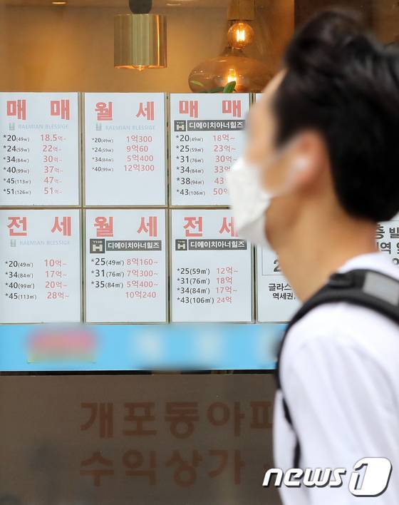 (서울=뉴스1) 장수영 기자 = 28일 서울 강남구에 위치한 한 공인중개사 사무소에 아파트 매매 및 전·월세 가격표가 적혀 있다.