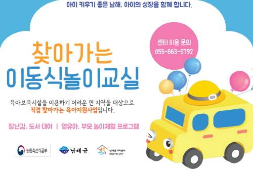 한편 남해군은 지난 11월 말 농림축산식품부에서 추진하는 '2022년 농촌보육여건개선사업'의 하나인 이동식 놀이교실에 선정되면서 사업비 1억5천200만 원을 확보했다.
