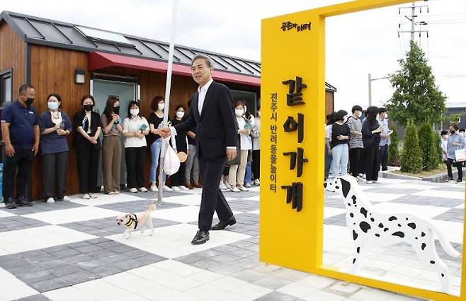 전주시는 28일 팔복동 첨단산업단지 공원에서 김승수 전주시장과 시·도의원, 동물보호 활동가 등이 참석한 가운데 반려동물놀이터 '같이가개' 개장식을 가졌다.