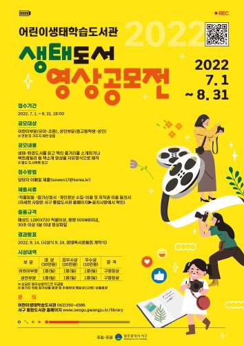도서관 관계자는 "생태도서 영상 공모전을 통해 가족이 함께 참여하는 독서 활동도 즐기고 생태·환경에 대한 관심을 갖는 계기가 되길 바라며 책을 좋아하는 분들의 많은 관심과 참여를 부탁드린다"고 말했다.